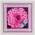 Dragonfly on Dahlia Framed Embroidery by Marie Noah